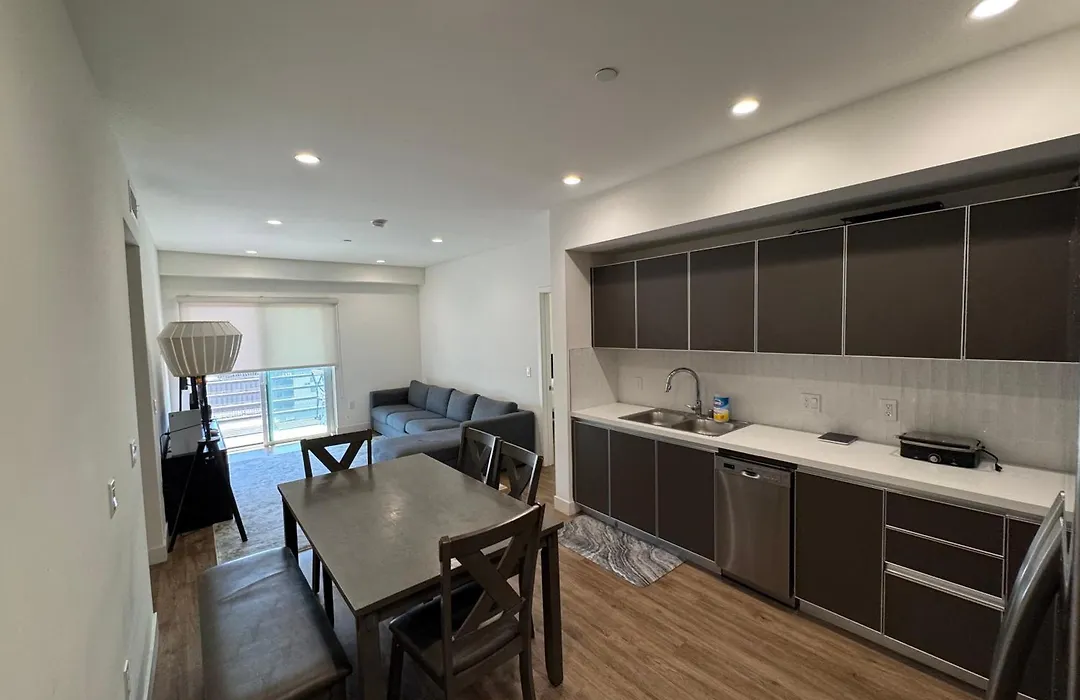 Appartement Urban Oasis La est également équipé d'une cuisine complète ainsi que d'un four et d'un lave-vaisselle. Une terrasse est à la disposition des hôtes pour se détendre après une journée bien remplie.